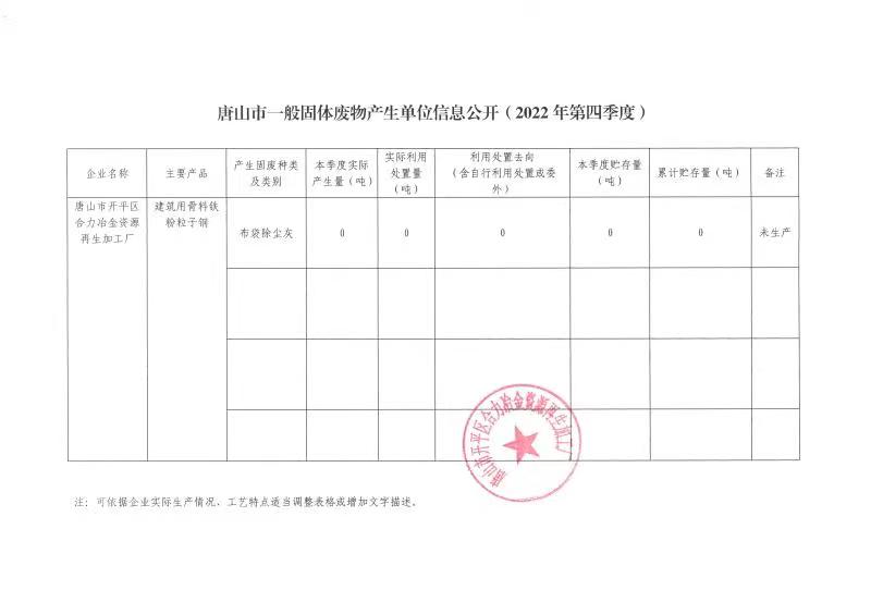 唐山市开平区合力冶金资源再生加工厂2022年第四季度信息公开