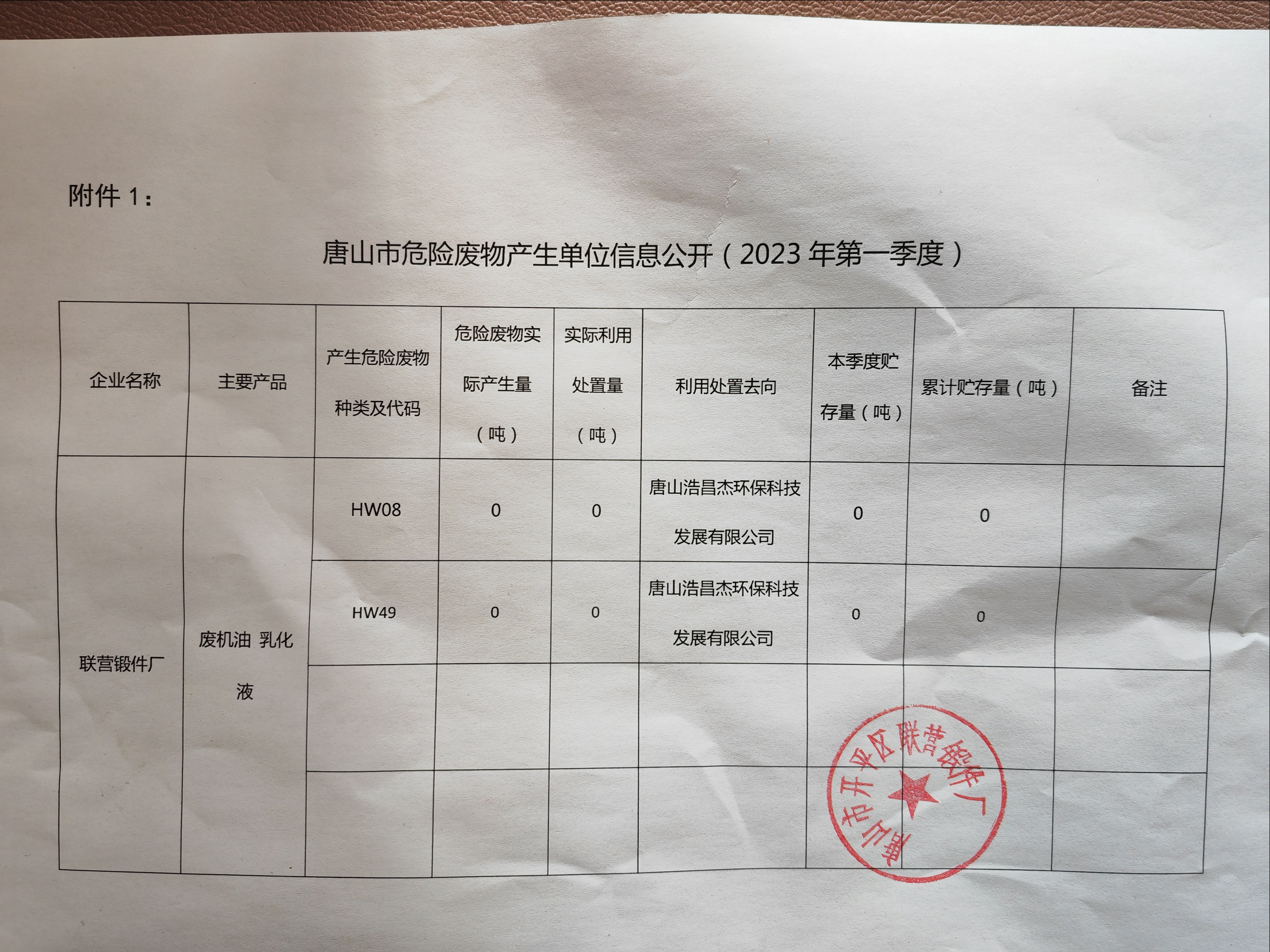唐山市开平区联营锻件厂2022年第四季度信息公开