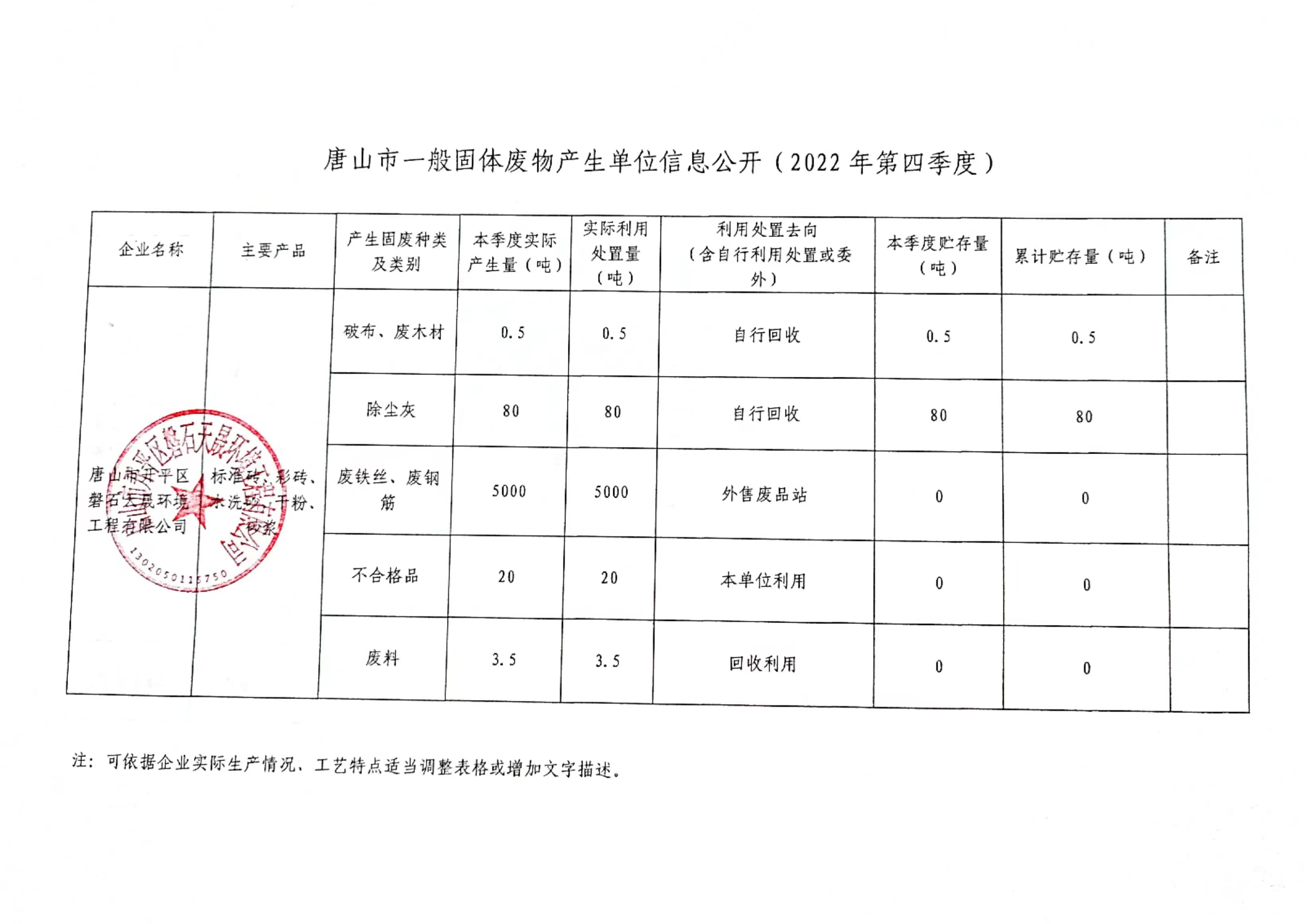 唐山市开平区磐石天晟环境工程有限公司2022年第四季度信息公开
