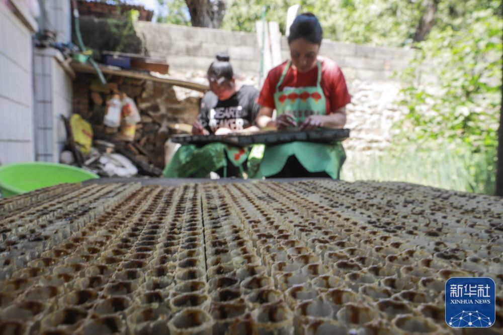 6月11日,河北省迁西县渔户寨乡农民在整理蜂巢。